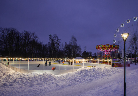 На катке «Луки Парк» создана настоящая праздничная атмосфера с приятной теплой подсветкой, создающей уют и романтический настрой. Шикарные виды на знаменитые аттракционы парка позволят вам сделать атмосферные фото. Согреет вас горячий глинтвейн и кофе в КАФЕ на территории парка.
