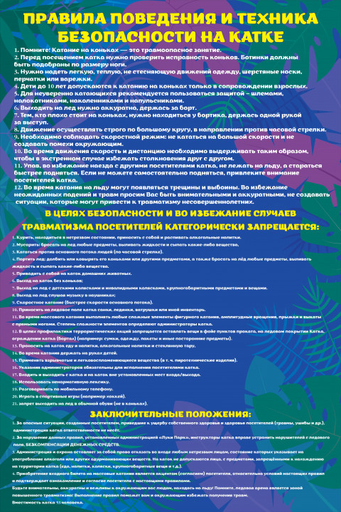 Мы за вашу безопасность. Поэтому перед выходом на лёд, обратите внимание на правила безопасности, которые представлены ниже.